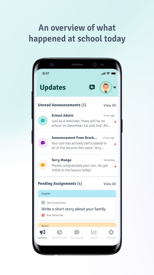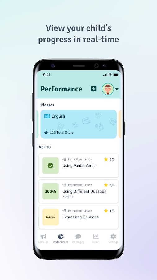 Дает родителям ежедневное представление обо всех предметах, уроках и занятиях, которыми занимается их ребенок, а также о других наградах и отзывах, присуждаемых учителями. Следите за успеваемостью вашего ребенка по каждому предмету и быстро оценивайте успеваемость в режиме реального времени.