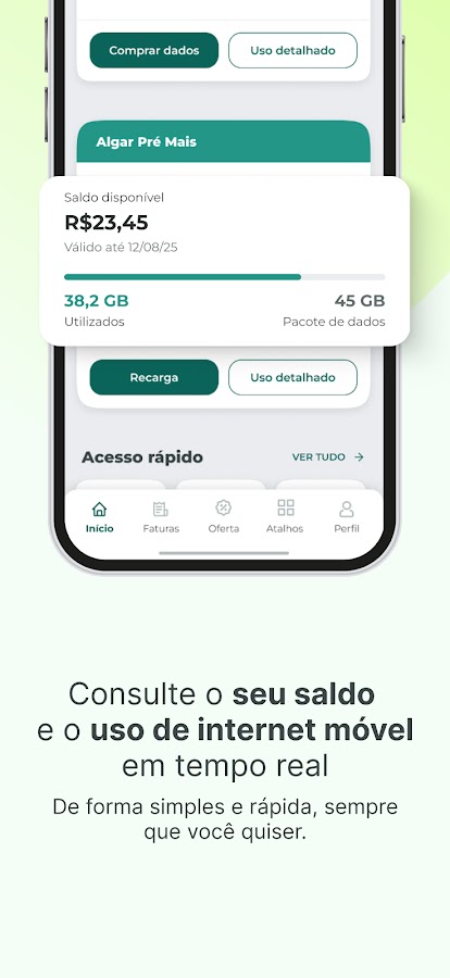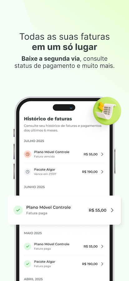 Управляйте своими услугами по контракту и цифровыми операциями в одном месте. С приложением Algar вы можете управлять всем прямо с телефона или планшета — быстро, удобно и безопасно.