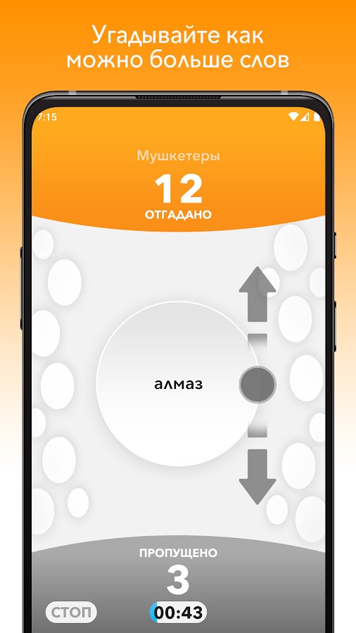 Захватывающий геймплей! Объясняйте слова максимально быстро, импровизируйте, находите неожиданные ассоциации и ведите вашу команду к победе.