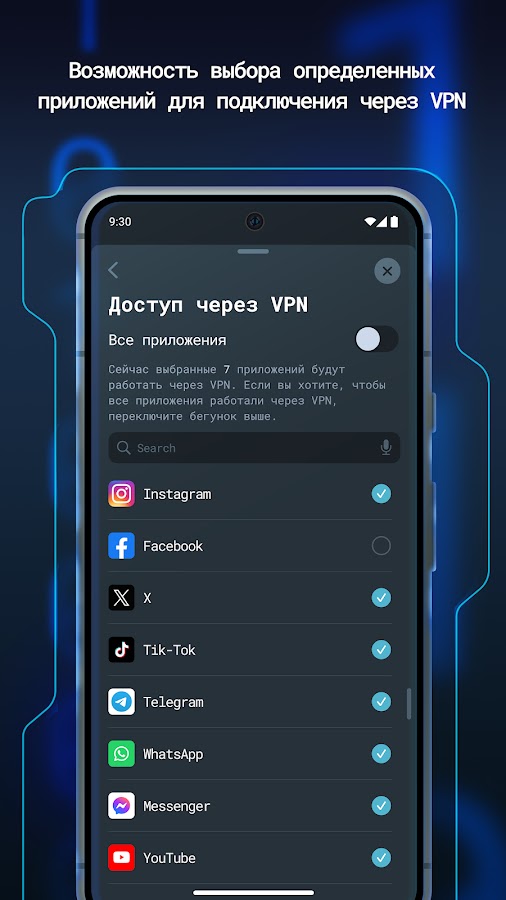 ➜Реализована возможность выбора отдельных приложений для подключения к VPN.