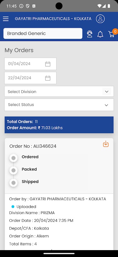 Alkem Marketplace — это платформа для заказов, которая позволяет дистрибьюторам компании Alkem Laboratories входить в систему и размещать заказы на лекарства. Возможности этого приложения включают заказ лекарств, отображение исторических заказов и отображение счетов.