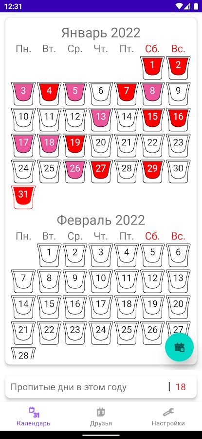 Качайте Алкогольный календарь себе и не забывайте отмечать дни!