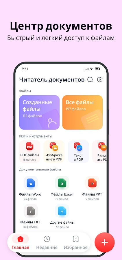 Открывайте офисные документы на своем телефоне, чтобы сэкономить время и силы. Вы даже можете просматривать электронные таблицы Excel, документы Word и PDF-файлы с помощью удобной программы чтения всех документов PDF. Всего одним нажатием программа для чтения документов открывает ваш документ в любом формате. Программа для чтения документов позволяет открывать документы, сохраненные во внутренней памяти или на SD-картах. Также открывайте загруженные файлы или вложения, полученные по электронной почте. Все программы для чтения документов легко читаются в PDF, Excel, Word и других форматах документов. Вы можете управлять всеми своими файлами в одном файле PDF, а также в форматах PPT, XLS, TXT и Word.