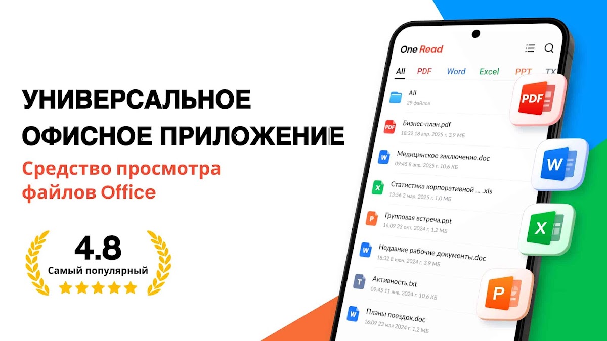 Попробуйте Средство чтения всех документов! Это приложение формата все в одном полностью совместимо со всеми файлами Office и позволяет легко работать с файлами любых форматов, например PDF, DOC, DOCX, XLS, XLXS, PPT, TXT и т. п. Оно умеет автоматически сканировать файлы на вашем телефоне и упорядочивать их в едином расположении по соответствующим папкам, чтобы вам удобнее было их просматривать и находить нужные.