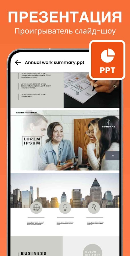 — Отличное приложение для просмотра файлов в форматах PPT/PPTX.