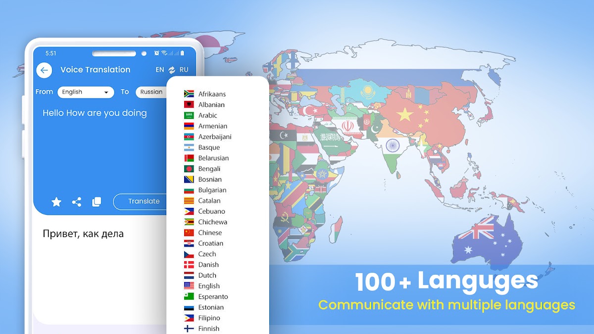 Приложение-переводчик на все языки очень легко переводит текст, голос и фото. Используя опцию перевода текста, можно легко переводить с одного языка на другой не только текст, это приложение поддерживает голосовой перевод для перевода на все языки и переводчик изображений, а также с помощью OCR переводит все типы текста в переведенный текст очень легко. Люди, говорящие на английском языке, могут легко общаться с другими, так как это приложение-переводчик дает вам возможность легко делать заметки от разговора до перевода на все языки. Не только приложение-переводчик, но и полноценный инструмент обучения для всех возрастных групп. Легко изучайте родные языки с помощью приложения для перевода с английского на языки мира и изучайте испанский, итальянский, немецкий, китайский язык или легко общайтесь по-русски, понимая языки перевода. Не волнуйтесь, используйте функцию «говорить» на всех языках, чтобы переводить слова с английского на испанский, итальянский, немецкий, китайский или русский язык с произношением на всех языках. Не только эти языки, это приложение-переводчик может легко переводить все языки.