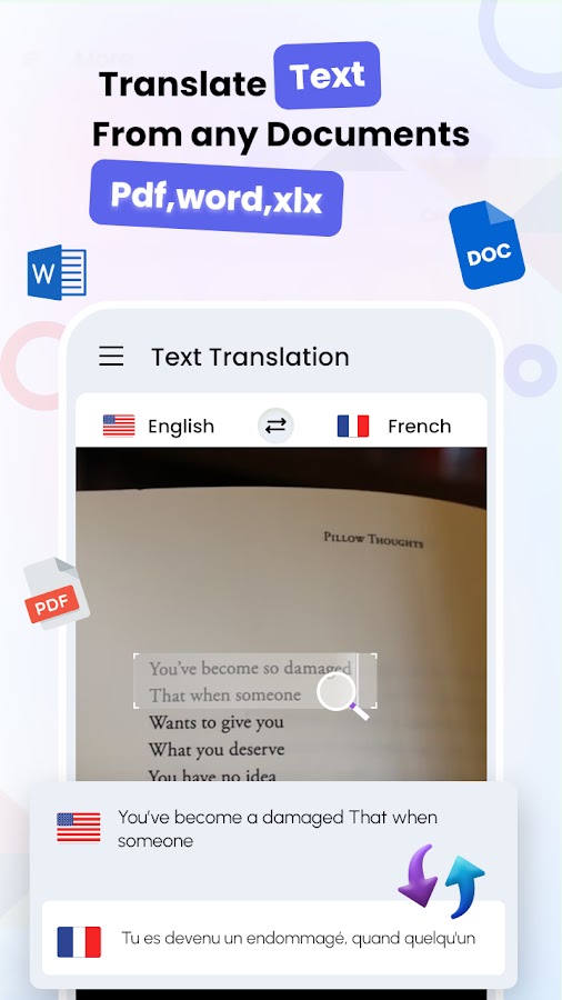 Користувач легко перевіряє аудіопереклад на фото-перекладач та мовний перекладач, щоб усунути мовний бар’єр.