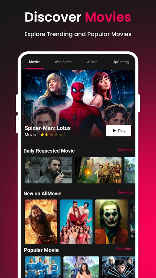 All Movies помогает пользователям находить фильмы в HD-качестве, популярные веб-сериалы, телешоу и трейлеры к фильмам, а также определять, где их можно посмотреть онлайн на OTT-платформах.