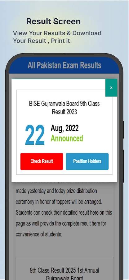 Скачайте сейчас и больше никогда не пропустите результаты экзаменов! Будьте в курсе результатов экзаменов All Pakistan