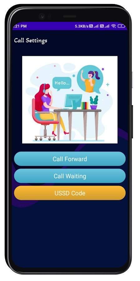 Настройка вызова второй категории предоставляет вам код ussd или код mmi для настройки в качестве средства набора номера кода ussd, с помощью которого вы можете использовать его в качестве средства включения ожидания вызова, проверки версии прошивки и т. д. код ussd может не работать на некоторых мобильных телефонах, поскольку это зависит от производителя мобильного телефона и мобильного телефона. обновление настроек программного обеспечения, чтобы избежать этой путаницы, мы прикрепили возможный результат в разделе кода ussd для справки. Мы старались сохранить код mmi, который используется для работы на максимальном количестве устройств, поэтому доступен выбранный вручную код. Мы также предоставили возможность переадресации вызовов через ussd-код, с помощью которого вы можете проверить свой статус переадресации вызовов, а также выполнить его, это будет полезно во многих ситуациях.