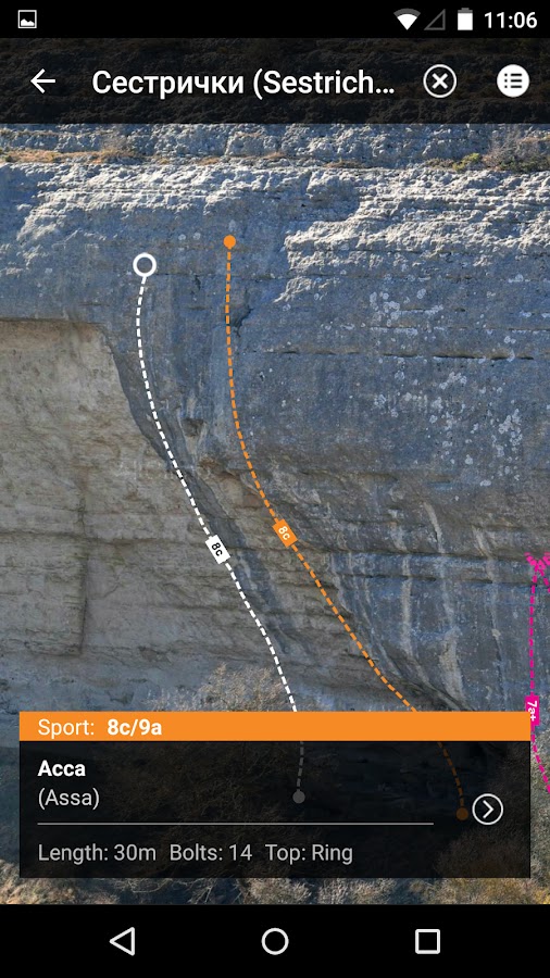В несколько касаний вы сможете найти интересующий вас сектор, узнать статистику по категориям маршрутов, просмотреть линии трасс, прочитать комментарии.