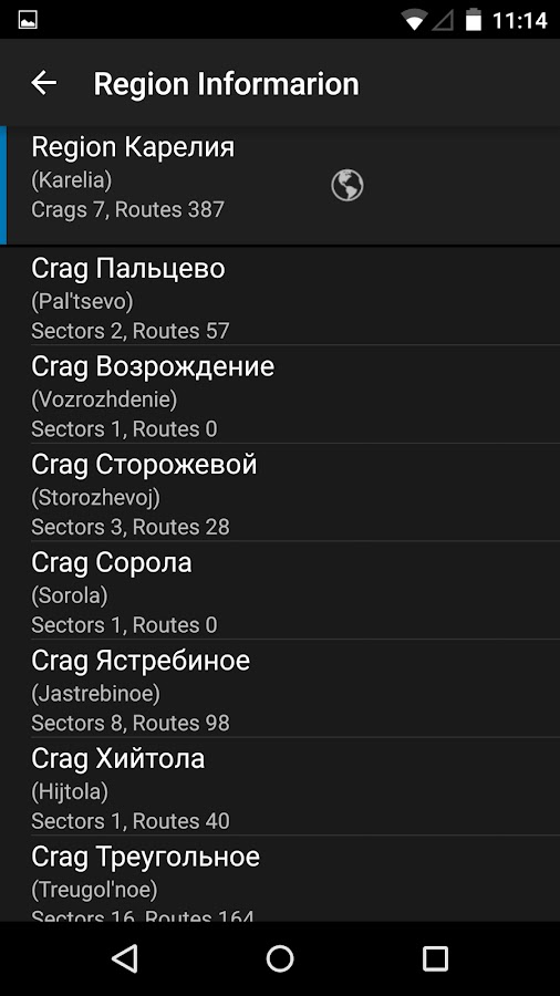В списке доступных районов известные мировые и Российские скалолазные споты: Крит, Калимнос, Турция, Таиланд, Арко, Бишоп и многие другие.