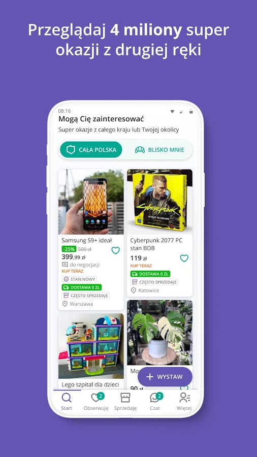 Используйте приложение Allegro Lokalnie прямо сейчас. Удобно продавайте ненужные предметы и зарабатывайте за них дополнительные деньги. Экономьте, покупая секонд-хенд, дешевле, чем в магазине. Включите уведомления и заходите почаще, чтобы не пропустить акции.
