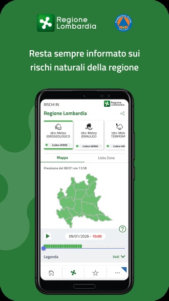 allertaLOM — это приложение региона Ломбардия, позволяющее получать оповещения гражданской защиты, выпускаемые Функциональным центром мониторинга природных рисков региона Ломбардия, в связи с прогнозируемыми стихийными бедствиями, способными причинить ущерб.
