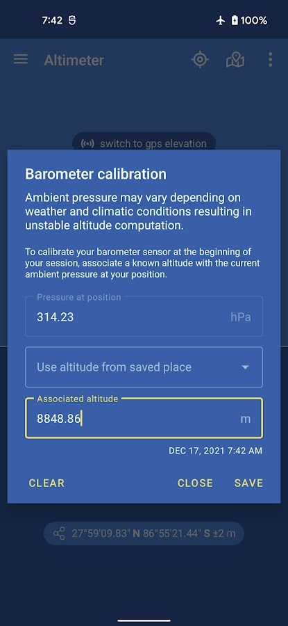 Альтиметр – это удобное приложение для Android, позволяющее определить истинную высоту над уровнем моря (MSL) в вашем текущем местоположении или в любом месте на Земле. Требуется доступ к местоположению вашего устройства, чтобы получить необработанную высоту из сигнала GPS, и не требуется подключение к сети для работы. Истинная высота над средним уровнем моря определяется с использованием гравитационной модели Земли EGM96. Основные особенности: