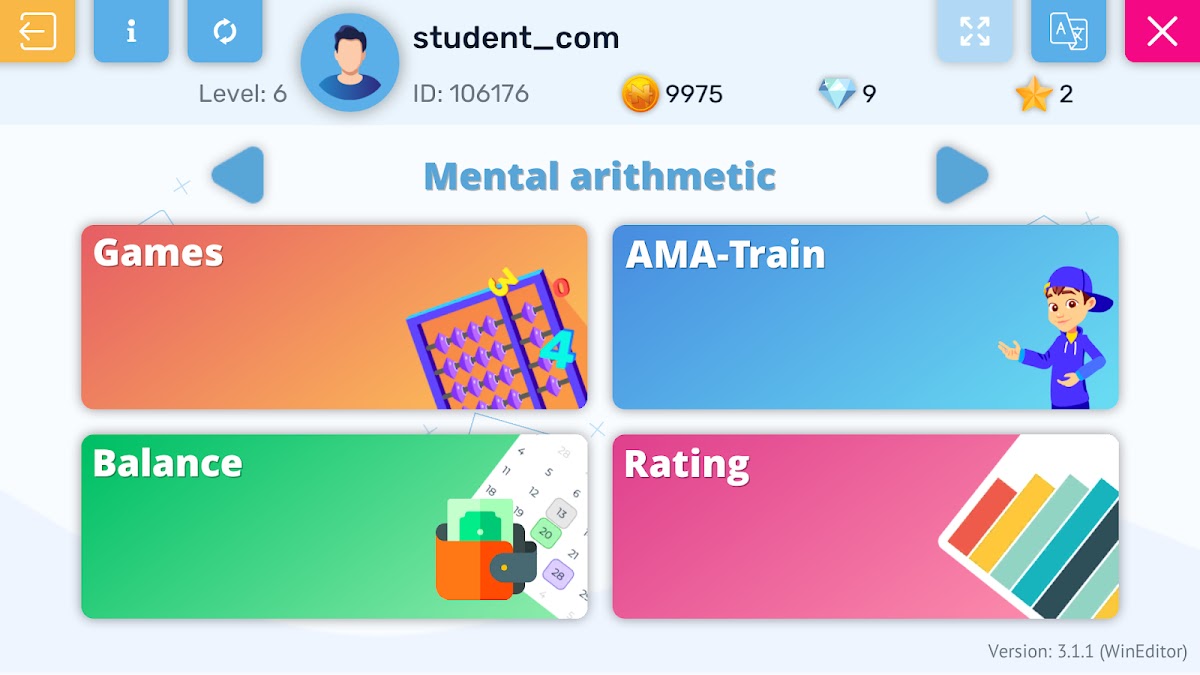 В приложении реализованы задания для курсов: меморика, либерика, ментальная арифметика. Занятия по предложенным методикам помогут улучшить память, развить скорость реакции и мышления. Школы Амакидс, Смартум работают во многих странах. Предложенные развивающие игры призваны сделать процесс обучения учеников более интересным и красочным, по сравнению со стандартным подходом.
