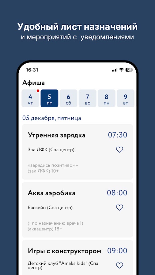 — Афиша мероприятий с уведомлениями и избранным