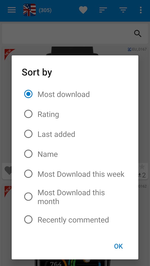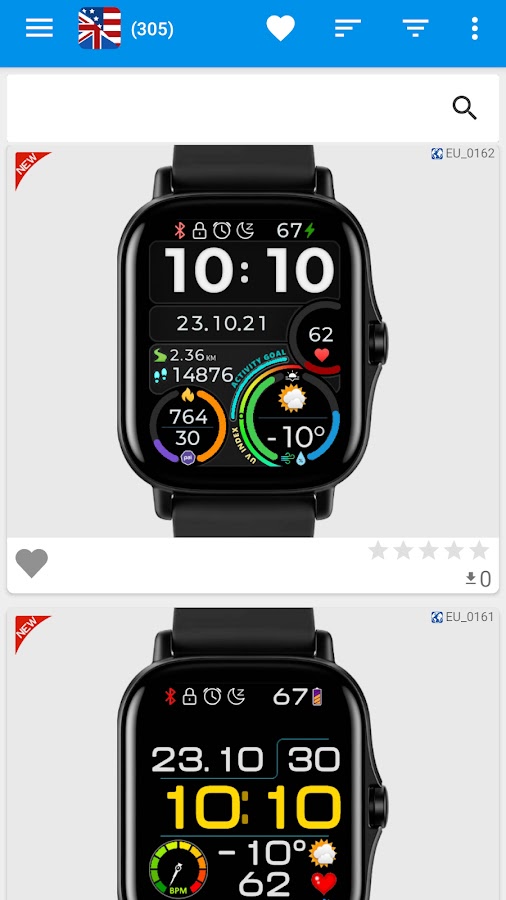 2) Выберите язык, выполните поиск или воспользуйтесь функцией фильтра и вы найдете свой циферблат для «Amazfit GTS 2/2e».