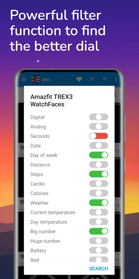 Найдите идеальный циферблат для Amazfit T-Rex 3, используя удобные возможности просмотра и фильтрации. Выполните поиск по цвету, стилю или популярности, чтобы найти идеальный вариант для вашего Amazfit T-Rex 3. Тратьте меньше времени на поиск и больше времени, наслаждаясь своим персонализированным стилем Amazfit T-Rex 3.