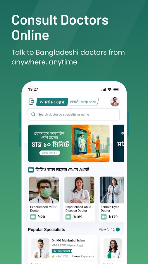 Получите доступную медицинскую консультацию от лицензированных бангладешских врачей по видеосвязи — в любое время и в любом месте.