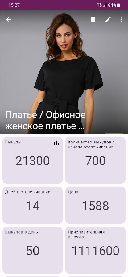 — хотите иметь быстрый способ отслеживания продаж собственных товаров, то это приложение для вас. Приложение позволяет отслеживать продажи товара, остатки на складе, среднее количество выкупов в день, приблизительную выручку, изменение цен, отзывы и так далее.