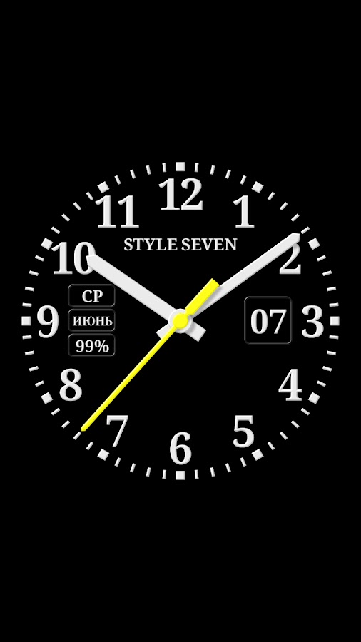 Аналоговые часы также показывают дату, день недели, месяц и заряд батареи (кроме виджета).