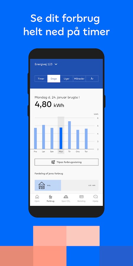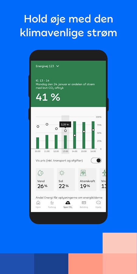 С приложением Andel Energi цена на электроэнергию всегда будет у вас в кармане, и вы сможете легко следить за потреблением электроэнергии. Вы также можете увидеть, из каких источников энергии поступает ваша энергия прямо сейчас и в течение следующих 24 часов. А затем вы получите советы и подсказки, которые помогут вам сэкономить на счетах за электроэнергию и обеспечить более экологичное потребление.