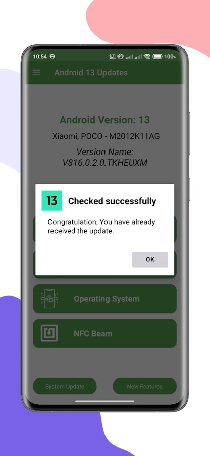 Это приложение играет очень полезную роль в получении обновления Android 13 для вашего телефона. Например, он предоставляет точную информацию о том, какая версия Android в настоящее время работает на вашем телефоне и имеет ли ваше устройство право на обновление Android 13. Кроме того, вы можете получить доступ к различным сведениям о вашем устройстве, и если для вашего телефона требуется обновление системы, вы можете выполнить это с помощью этого приложения. Он также содержит информацию о новых функциях, доступных в Android 13.