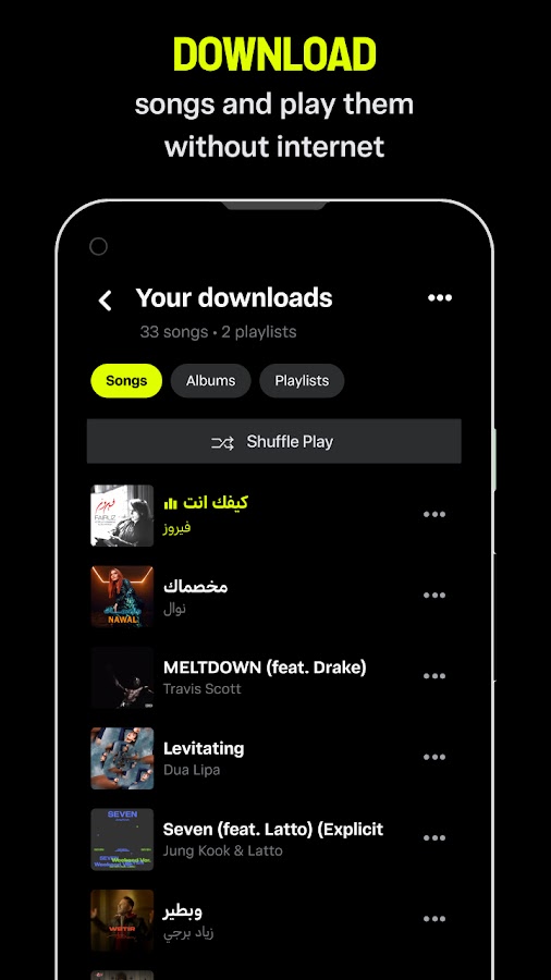 • Наслаждайтесь загрузками офлайн с помощью музыкального загрузчика Anghami