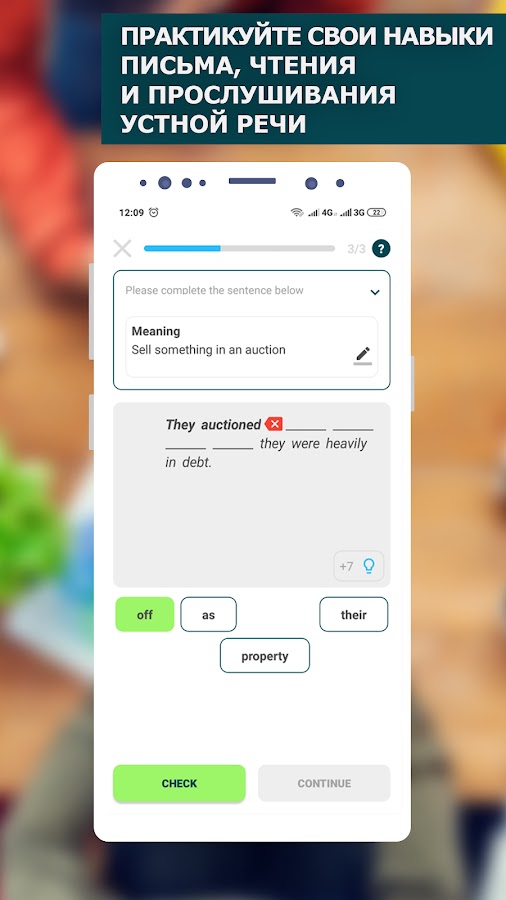 Во время изучения Вы сможете проверить себя, пройдя тесты на проверку знаний основной части фразового глагола и добавочной частицы. После прохождения теста, приложение рассчитает уровень Ваших знаний. Это даст стимул и дальше учить английский язык, открывая для себя всё новые горизонты.