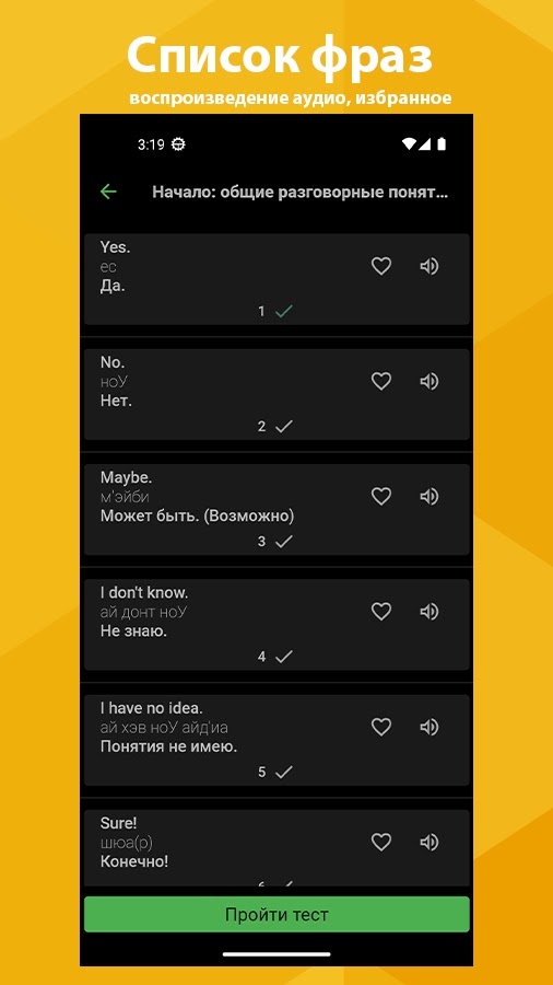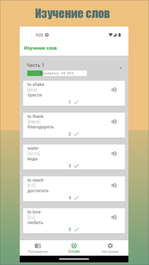 Спасибо за то что выбрали это приложение. Наша команда желает вам успехов в изучение языка. Оцените нашу работу и оставьте свой отзыв.