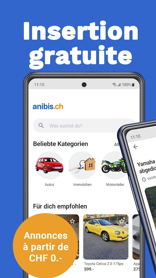 Откройте приложение anibis.ch и покупайте новые или бывшие в употреблении товары по всей Швейцарии, экономя при этом деньги. Вас порадует широкий выбор товаров. Ищете ли вы бытовую технику, одежду или новый автомобиль, на anibis.ch вы попали по правильному адресу. Откройте для себя, например: