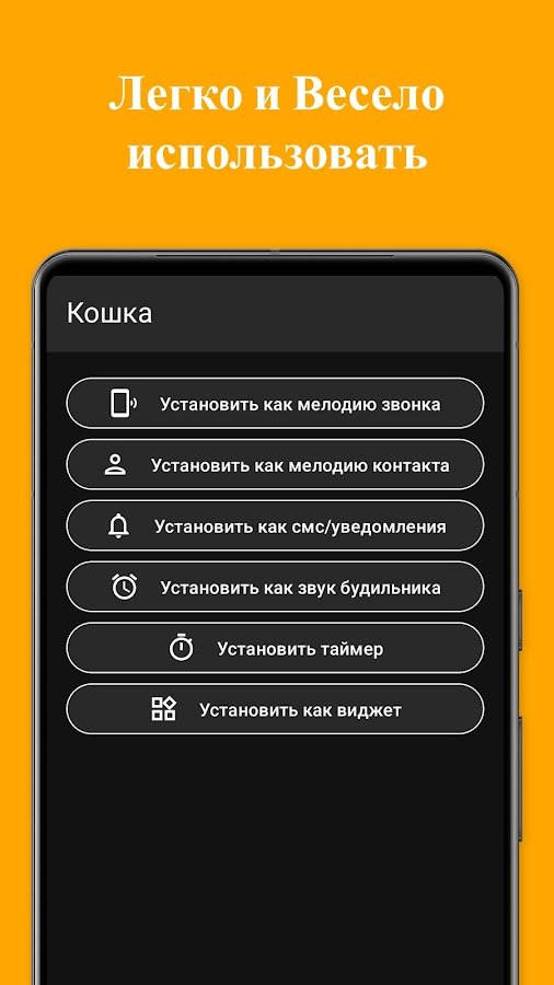 3. Нажмите одну кнопку чтобы установить эти бесплатно звуки на телефон как рингтон Андроид, звуки для уведомлений или рингтоны на будильник