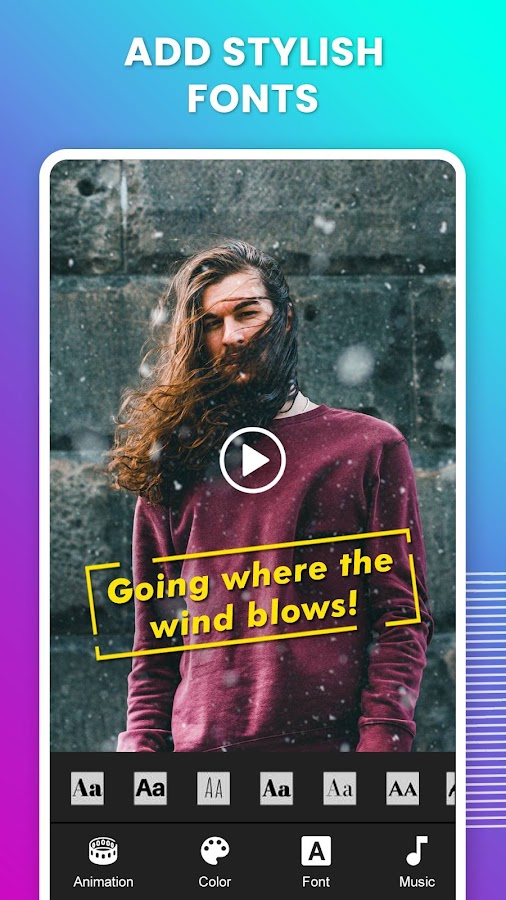 Вы можете создавать новое видео или импортировать видео из галереи, чтобы применять слова на видео с цветами и музыкой. Сделайте видео по-своему и отредактируйте видео, чтобы поделиться всеми своими друзьями.