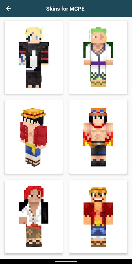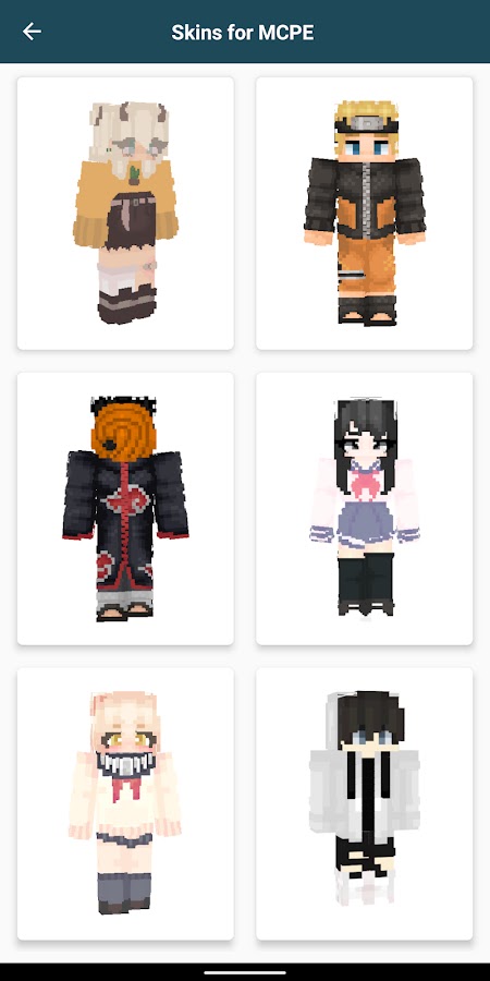 У вас должны быть скины аниме для Minecraft PE сейчас. Играйте в многопользовательскую онлайн-игру с самыми крутыми скинами. Выберите свой любимый скин аниме из каталога. С этими аниме-скинами для майнкрафт вы удивите всех на сервере.