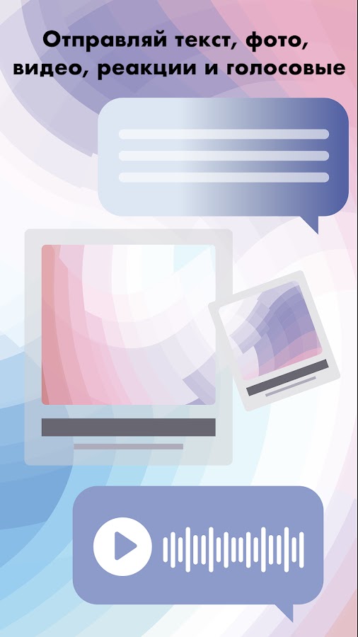 В АнонЧате можно отправлять текстовые и голосовые сообщения и фотографии, сделанные на камеру или из галереи телефона, чтобы переписка была более яркой и живой.