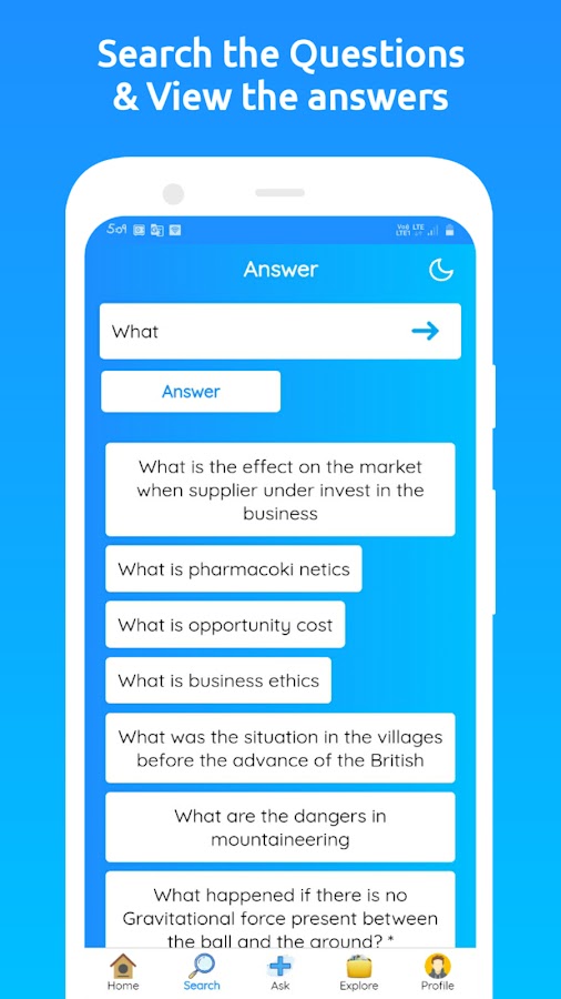 Ответ — это простая платформа вопросов и ответов. Это простое и лучшее приложение для вопросов и ответов. Он был специально разработан для учащихся и студентов, которые могут задавать свои сомнения и разрешать сомнения других. Итак, вы можете помогать другим в их домашнем задании. Ответ — лучшее приложение для решения и устранения сомнений. Его также называют приложением «Задавайте вопросы, задавайте ответы». Это лучшее приложение для решения сомнений для студентов. Если вам нужна помощь в выполнении домашнего задания, вы можете задать этот вопрос в этом приложении. Если кто-то знает ответ на этот вопрос, он поможет вам, дав свой ответ. Вы также можете потратить некоторое время на изучение функции, которая дает лучшие вопросы, которые были решены. Итак, вы узнаете что-то новое из этого. Используя приложение для ответов, вы можете провести время хорошо и с пользой.