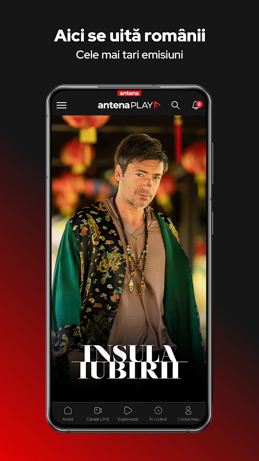 AntenaPLAY — крупнейшая местная, оригинальная и эксклюзивная контент-платформа в Румынии. Вы можете смотреть в прямом эфире 6 телеканалов: Antena 1, Stars, Happy, ZU TV, Antena International и Antena 3 CNN, эксклюзивные каналы в прямом эфире, закулисное видео ваших любимых шоу, шоу AntenaPLAY Original и эксклюзивные мероприятия для вас.