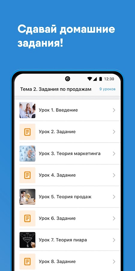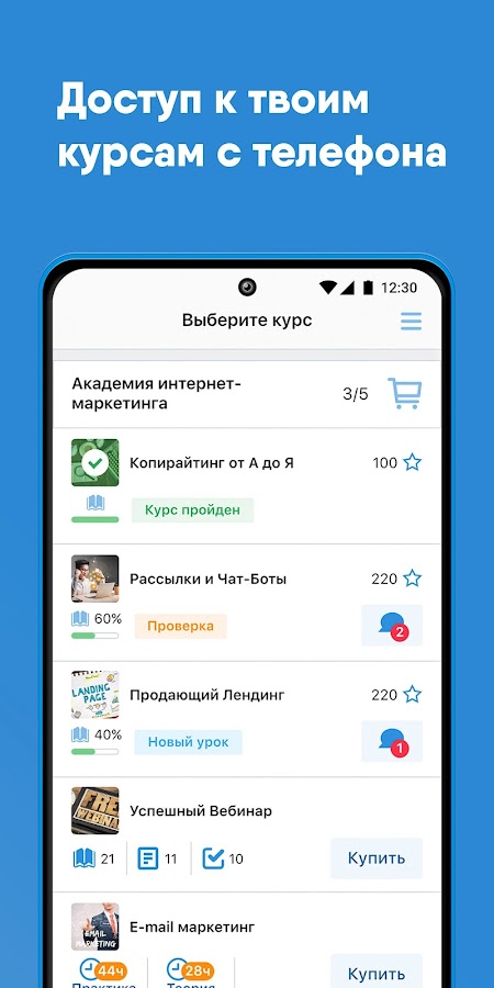 Push-уведомления позволяют мгновенно узнавать о новых сообщениях в чате курса, новых уроках, ДЗ и других важных событиях обучения.