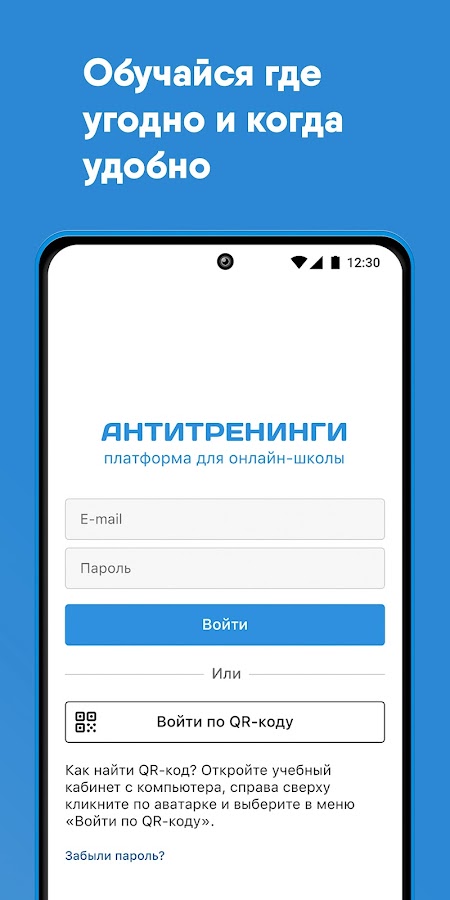 Приложение для учеников и преподавателей antitreningi.ru. В нём вы сможете обучаться, переписываться в чате, выполнять или проверять домашние задания.