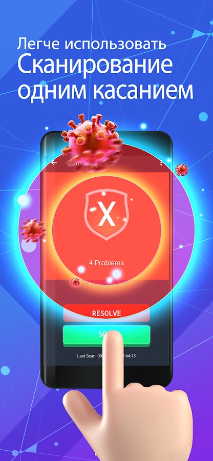 Сканирование с одним щелчком завершает защиту устройства и защищает всех от вирусов.