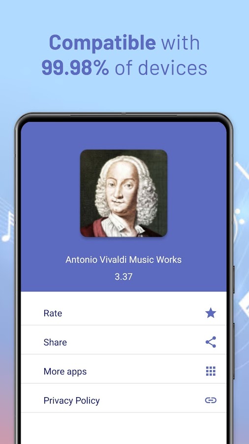 Скачайте приложение Антонио Вивальди Музыка для Android бесплатно - последняя версия (3.39) уже доступна для установки на ваш телефон или планшет.