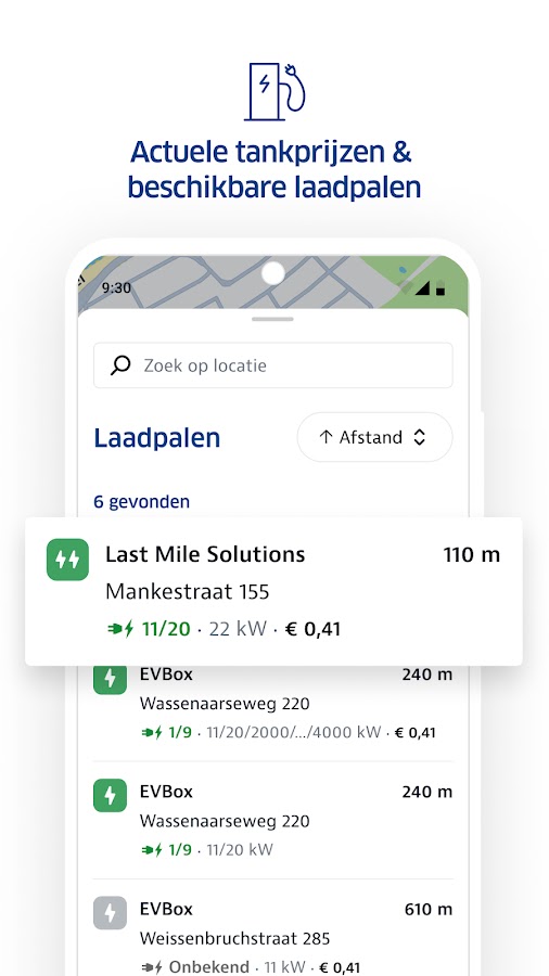 Во вкладке навигации вы найдете текущие цены на бензин на всех заправочных станциях Нидерландов или конкретно на запланированном вами маршруте. Благодаря удобным цветам вы сразу увидите, где можно недорого заправиться. Нажав на заправку, вы увидите все часы работы, удобства и цены.