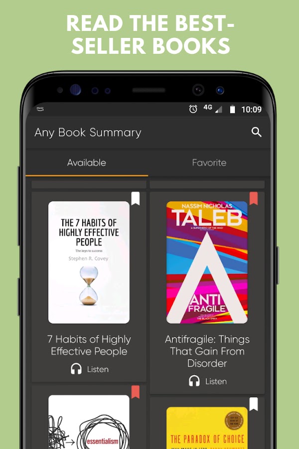 С Any Book Summary вы получаете ключевые выводы из самых продаваемых книг некоторых из лучших авторов. Вы можете пересмотреть основные идеи, представленные этими книгами менее чем за 10 минут.