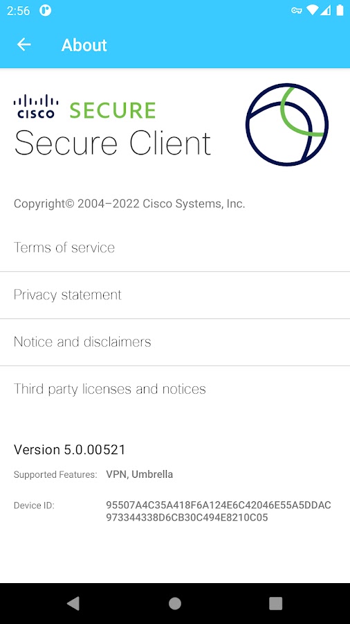 Скачайте приложение Cisco Secure Client-AnyConnect для Android бесплатно - последняя версия (5.1.15.295) уже доступна для установки на ваш телефон или планшет.
