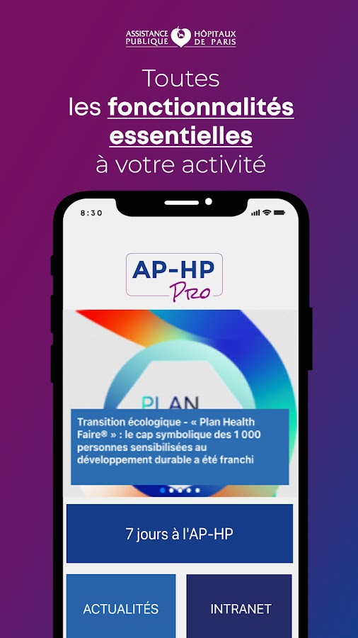 AP-HP Pro, приложение, которое упрощает повседневную жизнь 100 000 специалистов Assistance Publique – Hôpitaux de Paris, первой университетской больницы в Европе. В одном приложении все функции, необходимые для вашей деятельности, все новости от AP-HP, а также предложений Hoptisoins и Agospap у вас под рукой.