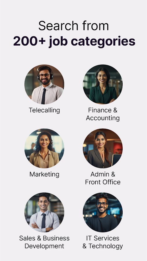 Изучите вакансии по отраслям: Ищите различные вакансии в сфере продаж и маркетинга, ввода данных, BPO, HR, IT, финансов и многих других офисных профессий.