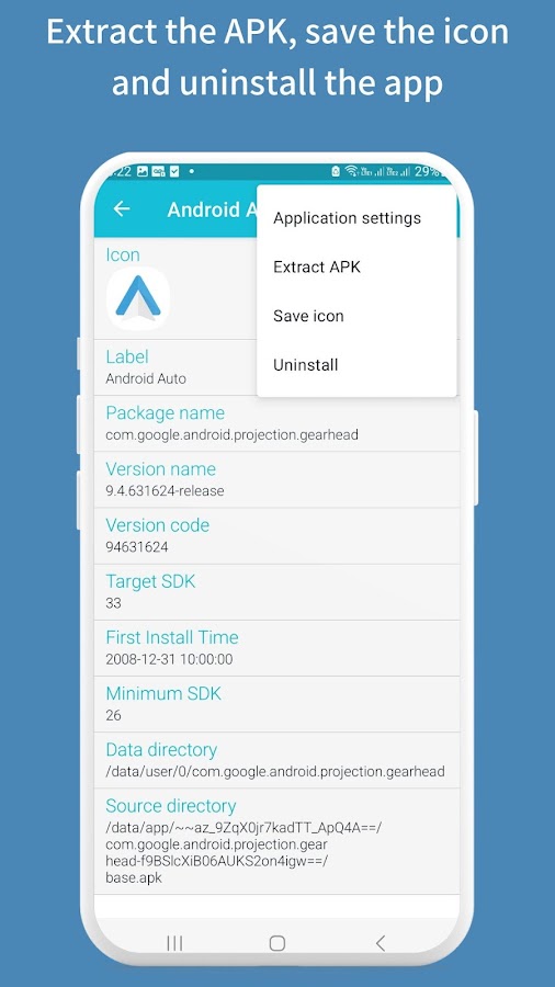 Вы можете получить подробную информацию об установленных приложениях, а также сохранить значок любого приложения на вашем устройстве и удалить несистемные приложения.