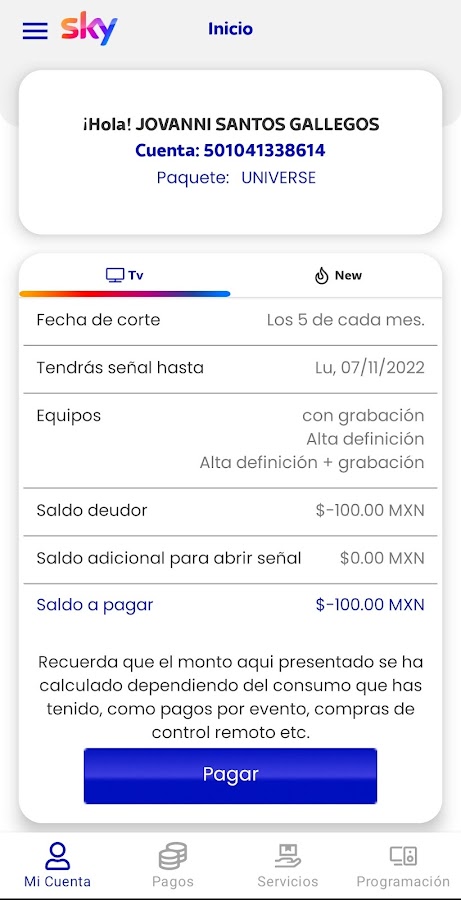 1. Проверьте информацию о SKY, SkyHD или счет VeTV: баланс, номер счета, состояние счета, пакет и нанял оборудование. «Также доступны для Центральной Америки и Доминиканской Республики».