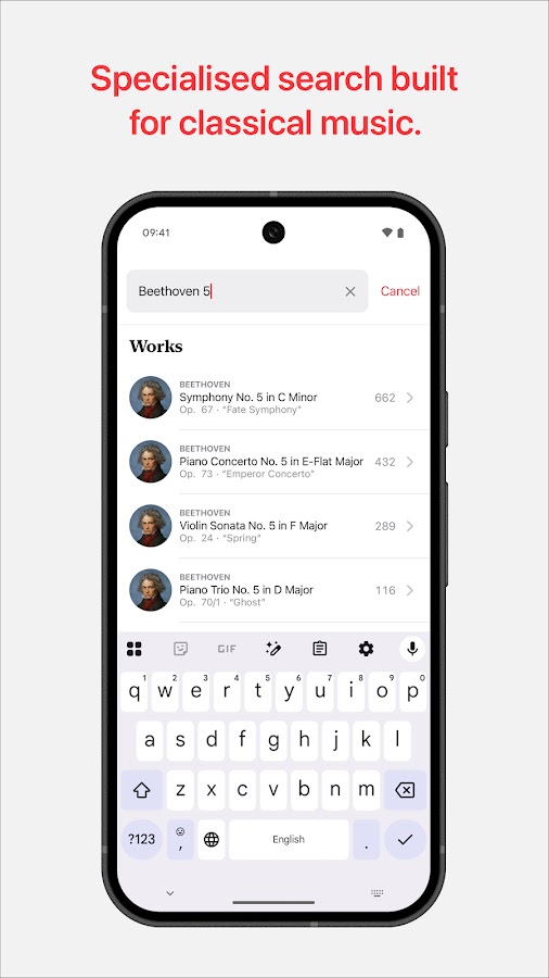 • Узнавайте новое прямо во время прослушивания с помощью содержательных заметок об альбомах, тысяч биографий композиторов и подробных описаний произведений.